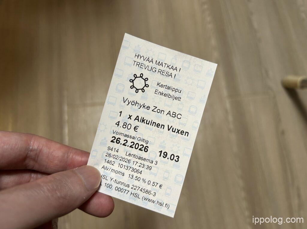 ヘルシンキ空港から中央駅までの電車料金は、1人4.8ユーロです。