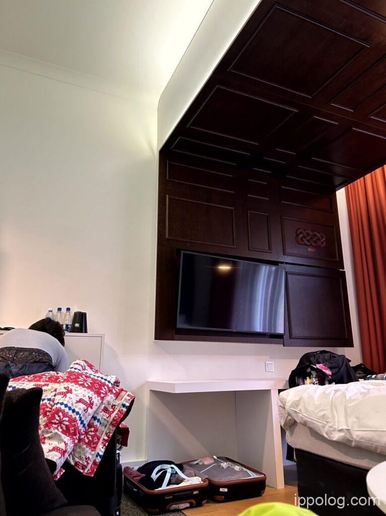 部屋は狭いわけではないが、ベッドが大きく手狭に感じます。