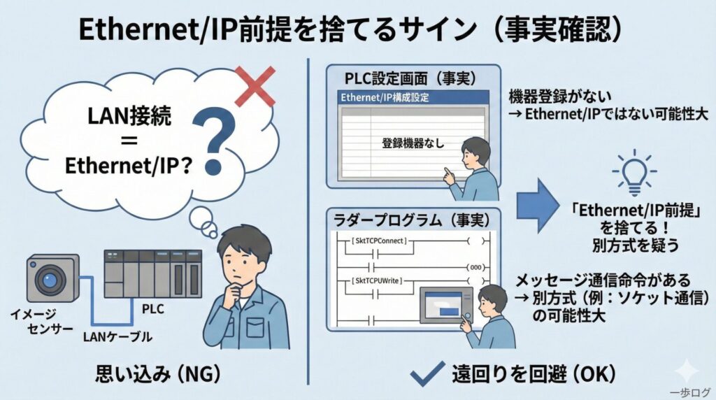 この段階で「Ethernet/IP前提」を捨てることが、遠回りを防ぐポイントになります。