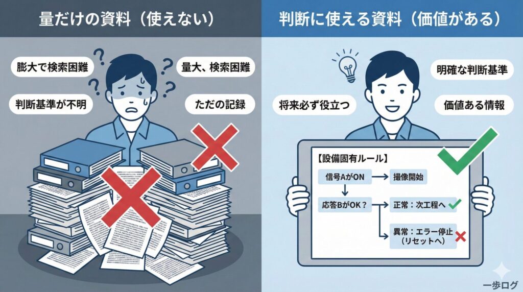 残すべきなのは、「この設備だけの判断ルール」です。