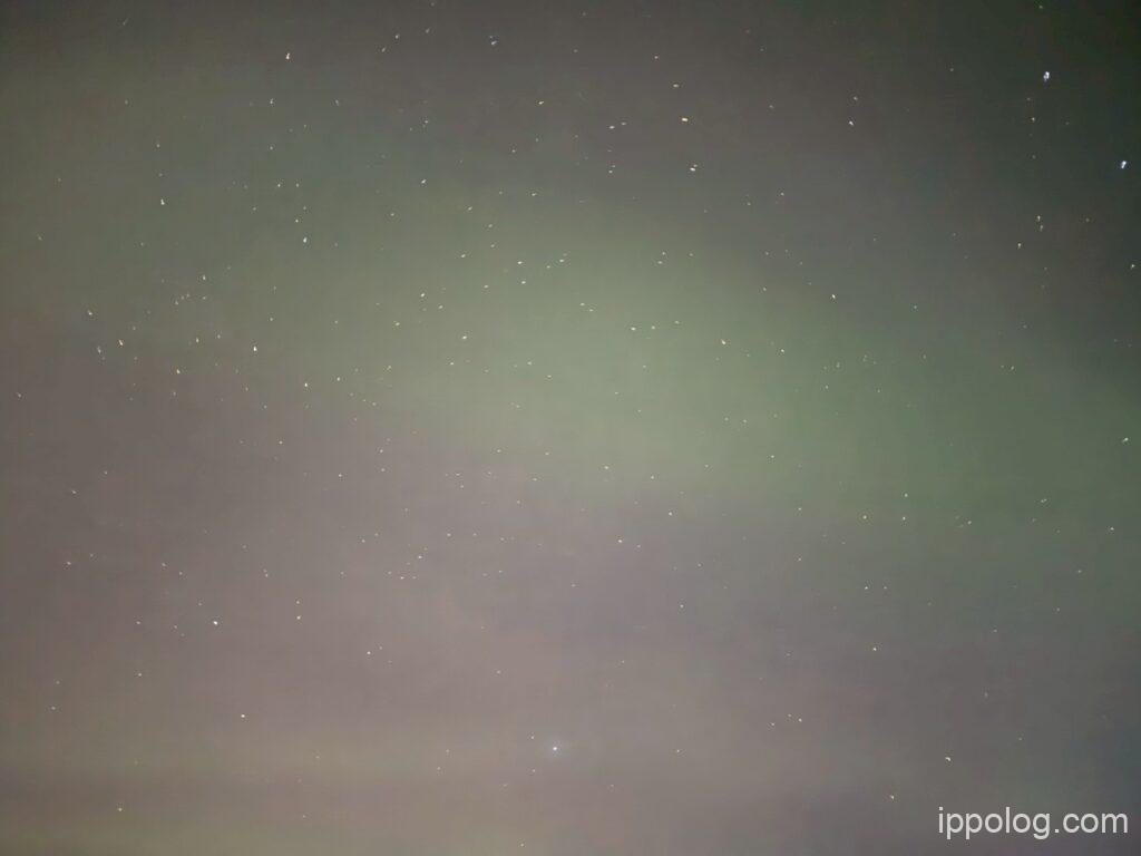 ナイトモードでオーロラの光をしっかりと写真に残すことができました。